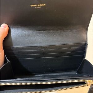 Elegant black wallet. Features iconic silver Y clasp. Sleek and stylish design.Excellent condition . No call outs