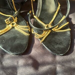 Saint Laurent Black and Gold Chain Heels