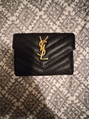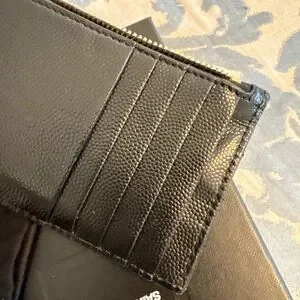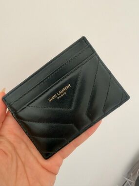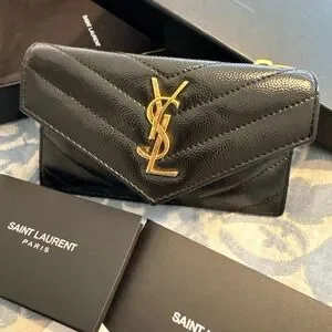 Saint Laurent Black and Gold Chevron Wallet Flap Card Case