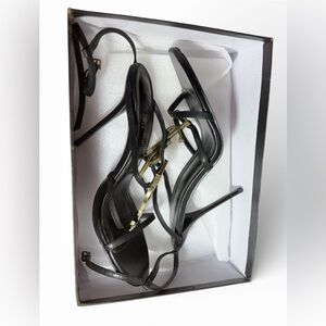 Saint Laurent Black and Gold Strappy Heels