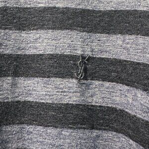 Saint Laurent Blue And Dark Blue Striped Linen Monogram T-Shirt