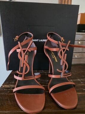 Saint Laurent Bordeaux Calf Leather Bos Taurus Stiletto Heel Women's Sandals
