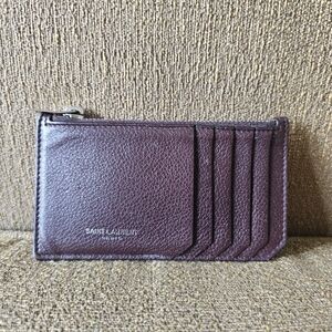 Saint Laurent Burgundy Leather Wallet/Card Holder with Zipper