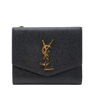 Saint Laurent CASSANDRE MATELASSÉ SMALL BLACK ENVELOPE WALLET GRAIN DE POUDRE LEATHER