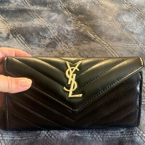 Saint Laurent CASSANDRE MATELASSÉ BLACK ENVELOPE WALLET GRAIN DE POUDRE LEATHER