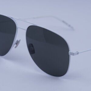 Saint Laurent CLASSIC11 038 Sunglasses White Aviator Frame, Grey Lenses