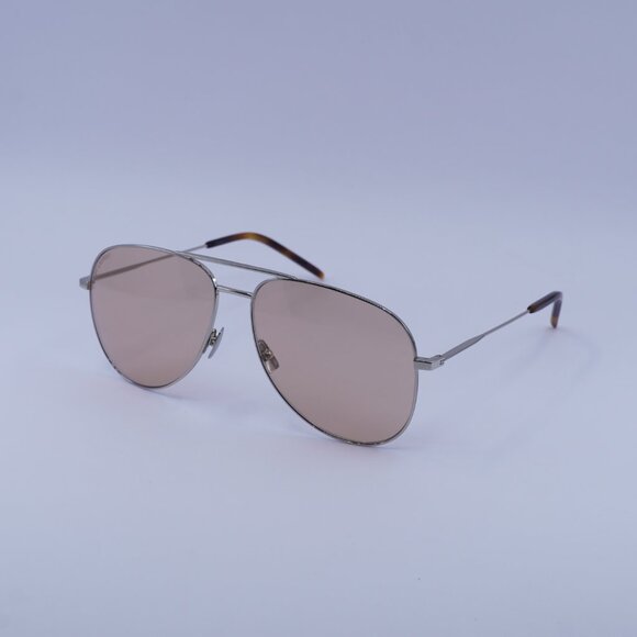 Saint Laurent CLASSIC11 055 Sunglasses Silver Aviator Frame, Pink Lenses