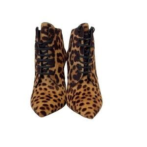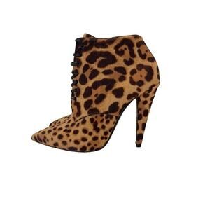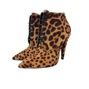 Saint Laurent Calfskin Hair Leopard Print Lace Up Ankle Boots 36