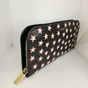 Saint Laurent Calfskin Leather Black/Red/White Star Zip Around Wallet