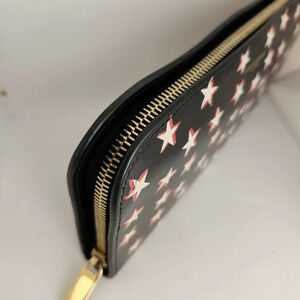 Full inclusion with original box, dust bag, care booklet and certificate of authenticity card. Excellent pre-owned condition. Only faint wear at bottom on stars, all pictured. Corners are in like new condition. Goldtone hardware has minor hairline scratches. Interior is clean with only slight indentations from hardware. Measures 8x4"