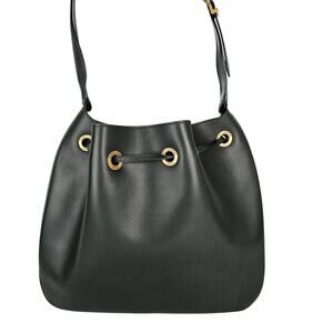 Features: Gold-tone hardware, drawstring closure, ysl logo charm, adjustable strap