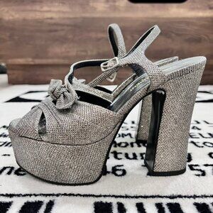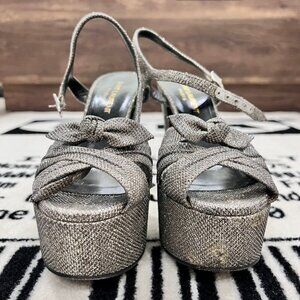 Saint Laurent Candy Metallic Jacquard Platform Sandal Heels Shoes.
