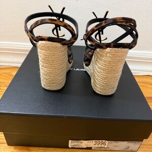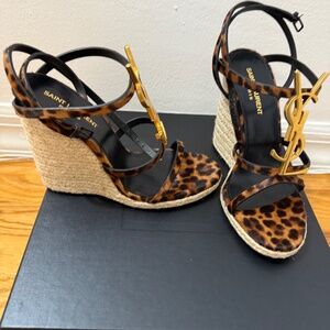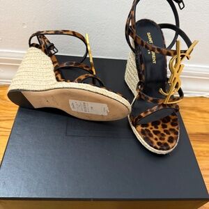 Saint Laurent Cassandra Black YSL Wedge Sandals Size 37+