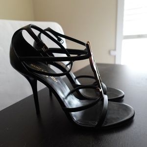Saint Laurent Cassandra heel in black leather and gold accents. Size 38. Amazing condition. Only worn twice. With box, dust bags, and shopping bag. More pictures available upon request.