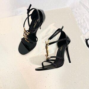 Saint Laurent Cassandra Gold-Logo Embellished Patent Leather Heels