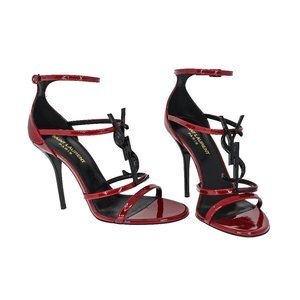 Dark red ‘Cassandra’ heeled sandals from Saint Laurent.