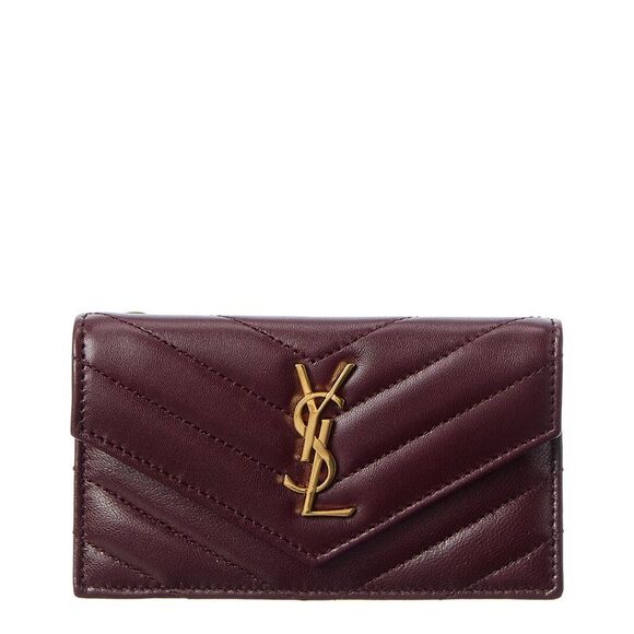 About the brand: Iconic, modern glam. Tres chic! Made in Italy Cassandre Leather Card Case in red leather and gold-tone hardware with YSL Cassandre monogram hardware, matelasse chevron quilted overstitching Interior design details: one snap fold bill pocket, 5 exterior card slots, one exterior zip coin pocket Measures 5in wide x 3in high x 0.5in deep Snap and zipper closure Please note: All measurements were taken by hand and are approximate; slight variations may occur. Our products are 100% genuine. In some cases we purchase merchandise from trusted independent suppliers and not directly from the brand owner. In all cases we stand by the authenticity of every product sold on our site.