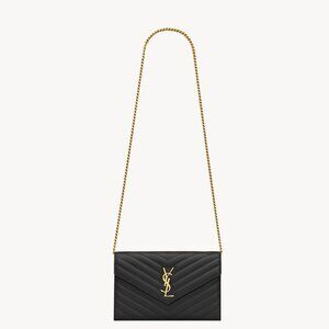 Authentic Saint Laurent Cassandre Matelassé Wallet on Chain in Grained Leather