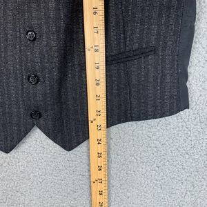 Elegant charcoal vest with subtle stripes. Features button closure and sleek design. Perfect for formal occasions.
