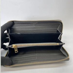 Chic charcoal wallet with iconic gold logo. Adds sophistication to any ensemble.