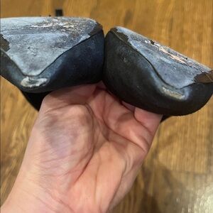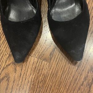 Chic and timeless black heels. Perfect for any event.need clean on the suede some damage on heel and tip