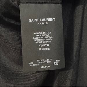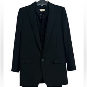 Classic Saint Laurent Paris Single-breasted one-button jacket made with certified wool, featuring a peaked lapel