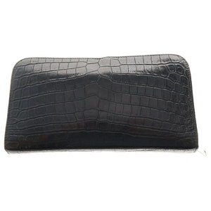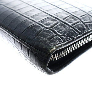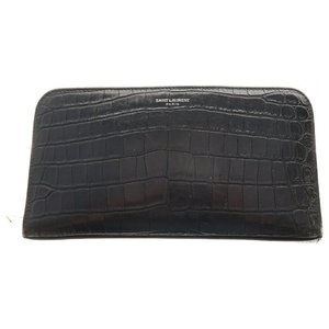 Saint Laurent Crocodile Wallet Zip Long Black PARIS