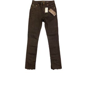 High-waist skinny jeans in stretch cotton denim with a dark wash that reinforces the slim profile. Cropped in length and finished with a cool raw-edge vented hem.