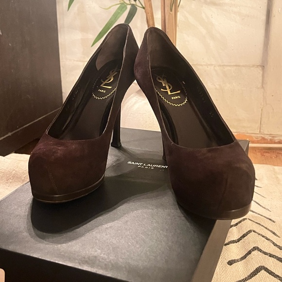 Saint Laurent Dark Brown Suede Heels