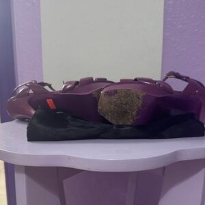 Chic dark purple heels by Saint Laurent. Strappy design with a sleek finish. Ideal for stylish outings. gently used rare colour to find it’s more of a Maroney Purple colour used wear on the bottom bottoms, but in good shape.
