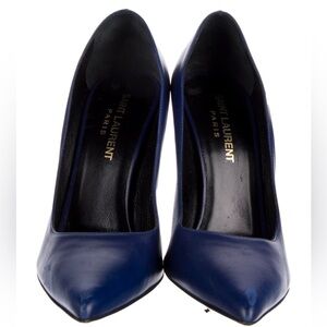 Chic Saint Laurent heels in deep blue. Perfect for elevating any look.