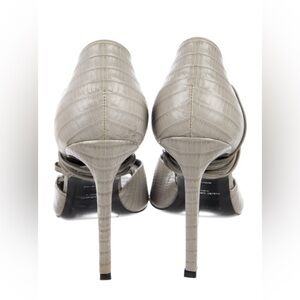 Saint Laurent Embossed Leather Gladiator Open Toe Heels Gray lace up ankle Wrap