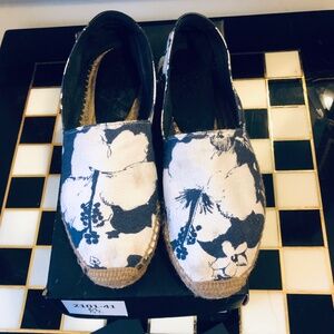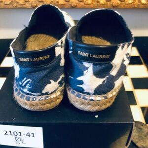 Ladies 38.5 Saint Lauren Blue-White Hibiscus Espadrilles
