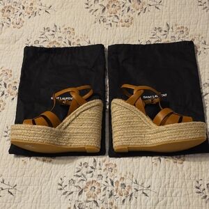 Saint Laurent brown espadrille wedge heels NWT in box including receipt.