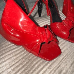 Saint Laurent Freja Patent Sandal with Large Bow (Red)