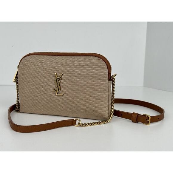 Saint Laurent Gaby Mini Crossbody Bag Brown Canvas (4)