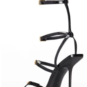 In good condition, worn once or twice. Comes with box but no receipt. Postmark authenticates purchases $500+. 4.33 in / 110 mm stiletto heel Open toe. Four embellished buckle ankle straps. Made in Italy
