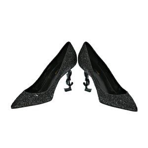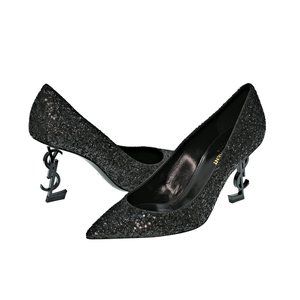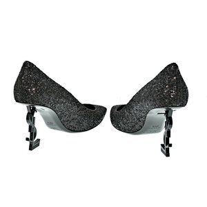 Saint Laurent Glitter Opyum 85 YSL Logo Heel Pumps