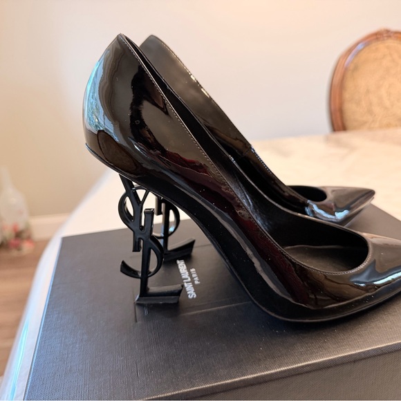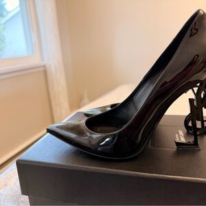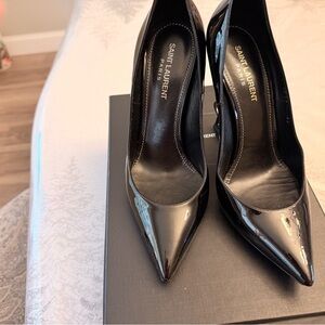 Saint Laurent Glossy Black Heels with Logo Detail