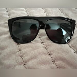 Elegant sunglasses with a glossy finish. Iconic Saint Laurent branding.