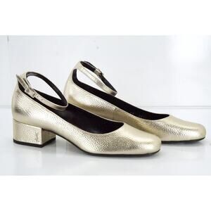 SAINT LAURENT GOLD LEATHER ANKLE STRAP PUMP SZ 37.5 NIB $895