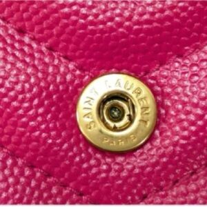 Authentic Saint Laurent Grain De Poudre Matelasse Chevron Monogram Flap wallet in gorgeous pink fuchsia. Carry as a small clutch or use as a wallet. This is in excellent pre-loved condition.