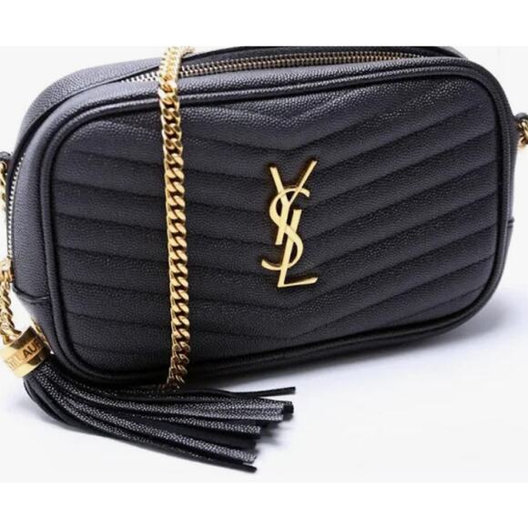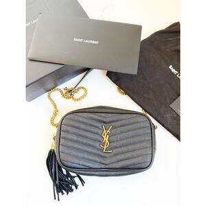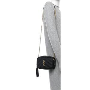 Saint Laurent Grain De Poudre Matelasse Monogram Mini Lou Camera Bag Black