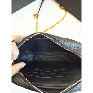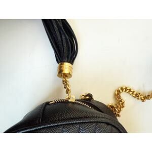 This item is in excellent used condition. There are no flaws to the inside or to the leather. The gold chain and tassel also show no wear. You will see a slight fading of the gold at the zipper. I am happy to upload video and more pics upon request. The item include box, dust bag, and all papers.