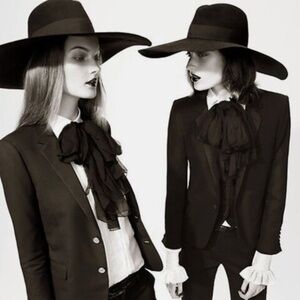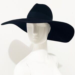 Saint Laurent Hat Wide Brim Oversized Black Rabbit Fur Felt Hedi Slimane Size 56