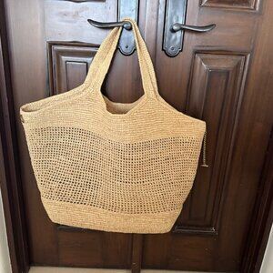 Maxi shopping bag MADE in A HAND-EMBROIDERED NATURAL RAFFIA.