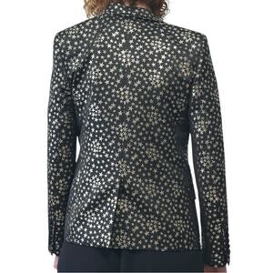 Saint Laurent Iconic Le Smoking Jacket Black w/ Silver Star Woven Jacquard FR 34
