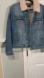 Denim Jacket with a pointed shearling collar and button closure, featuring two flap pockets at the chest, two welt pockets at the front and adjustable button tabs at the back waist.