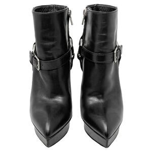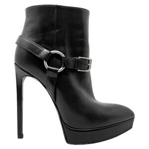Saint Laurent Janis boots, YSL harness ankle boot, Saint Laurent platform booties, designer high heel boots, black leather boots, edgy ankle boots, YSL heels, Saint Laurent size 36, made in Italy boots, luxury leather booties, motorcycle.