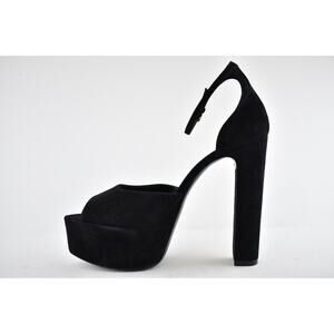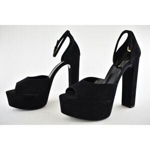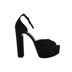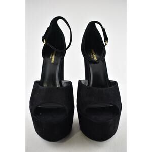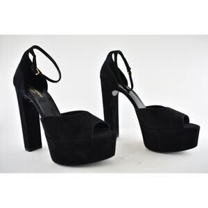 Saint Laurent Jodie Black Suede Platform Ankle Strap Sandal Block Heel Pump 42